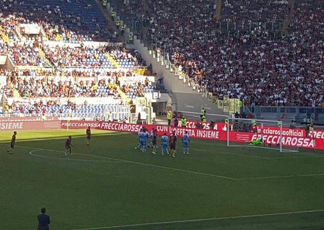 نیمه اول این جدال جذاب با تک گل لورنزو پیگرینی به سود رم پایان یافت. گلی که دقیقه 44 و با یک پشت پای تماشایی در شلوغی جلوی دروازه لاتزیو حاصل شد. روی این گل، تعلل استراکوشا، دروازه بان و نیز مدافعان لاتزیو عجیب جلوه می کرد.