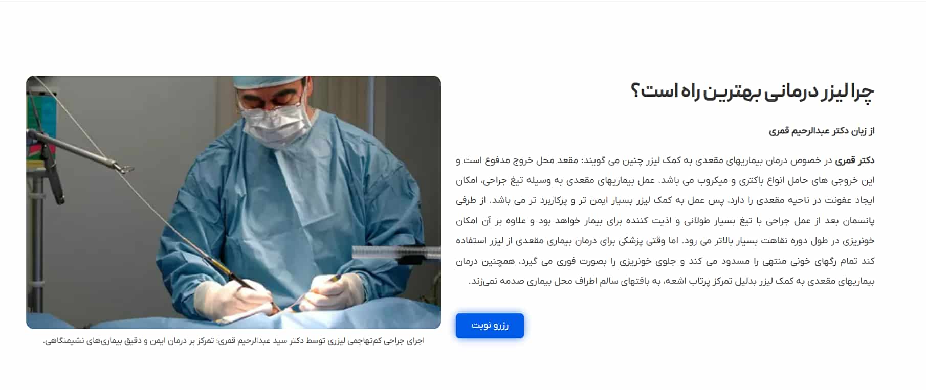آخرش من به این نتیجه رسیدم که برای شروع مسیر درمان شقاق در تهران و اینکه ببینم آیا واقعاً درمان شقاق با لیزر برای من مناسبه یا نه، انتخابم دکتر قمری باشه.