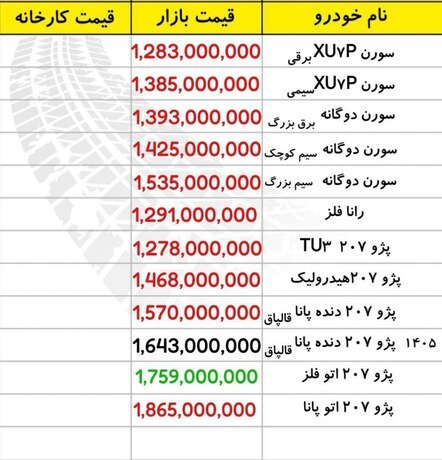 امروز یکشنبه ۳ اسفند ۱۴۰۴ قیمت خودرو به شرح زیر اعلام شد.