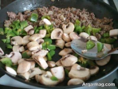 دستور پخت یک غذای خوشمزه با گوشت چرخ کرده و قارچ :