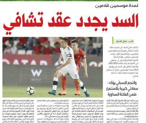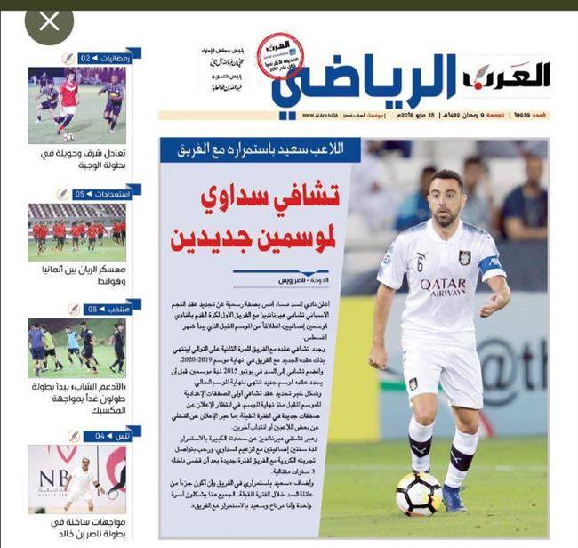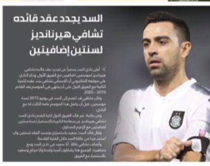 به گزارش "ورزش سه"، ژاوی هرناندز ستاره اسپانیایی اعلام کرد که قراردادش با تیم السد را به مدت دو فصل دیگر تمدید کرده است، روزنامه های قطری نظیر الوطن، العرب، استاد الدوحه و ... در صفحه اصلی خود به این خبر پرداختند تا تمدید قرارداد ژاوی سوژه اصلی مشترک امروز روزنامه های قطری شود.