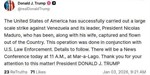 رئیس جمهور ایران گفت: اقدام دولت آمریکا در اعزام ناوگان جنگی به کارائیب و سواحل ونزوئلا، به بهانههای واهی، اقدامی کاملاً غیرقانونی، ناقض قواعد بینالمللی و بدعتی خطرناک در تهدید صلح و امنیت جهانی است و جمهوری اسلامی ایران آن را قاطعانه محکوم میکند.