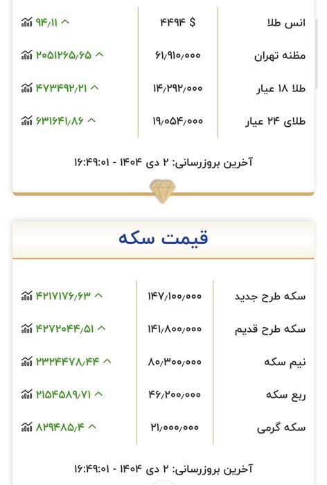 در دین نرخ گذاری، بهای هر گرم طلای ص۸ عیا ۱۴ میلیون و ۲۹۲ هزار تومان و هر گرم طلای ۲۴ عیار ۱۹ میلیون و ۵۴ هزار تومان قیمت خورد.